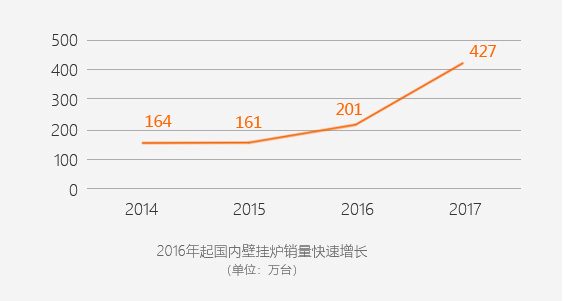 02自2016年國家實施“藍天行動計劃“長江以北的寒冷和嚴寒地區引來了”煤改氣和電“的取暖設施升級。據統計,北方地區在未來5年中有近3000多萬套住宅需要進行升級改造,機遇將大大促進壁掛爐和相關清潔能源取暖設備需求的增長。